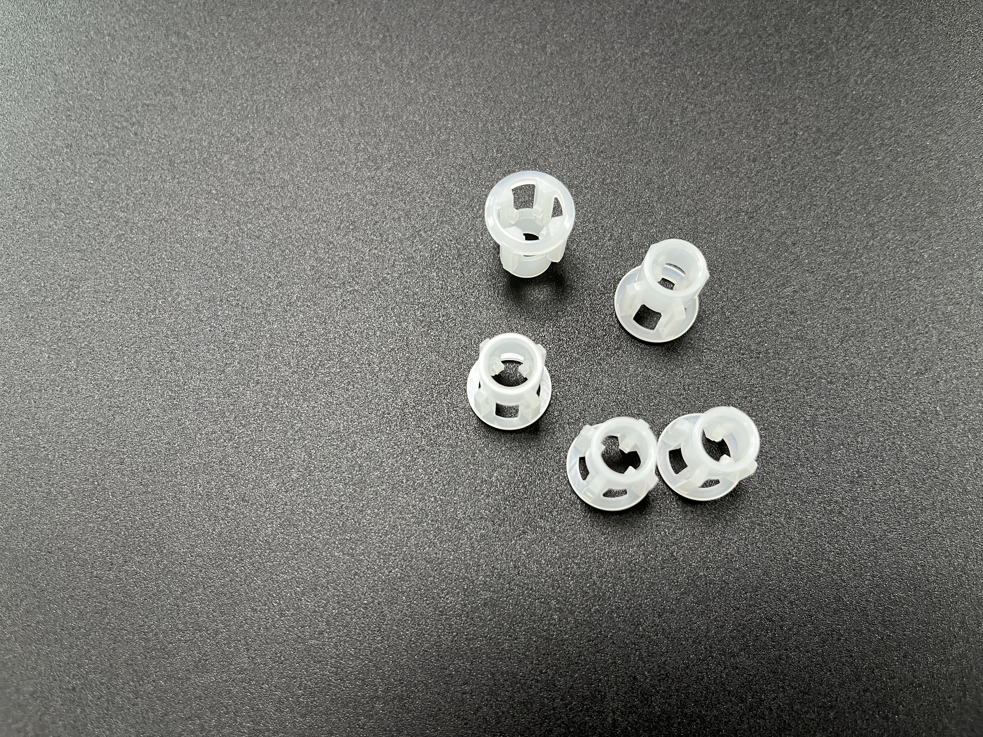 Решение для подрезов: подпружиненные боковые ползунки (с износными накладками из ПТФЭ) для эластичных захватов крепежа — точность повторного позиционирования ≤ 0,002 мм, что позволяет избежать деформации захватов во время извлечения из формы.