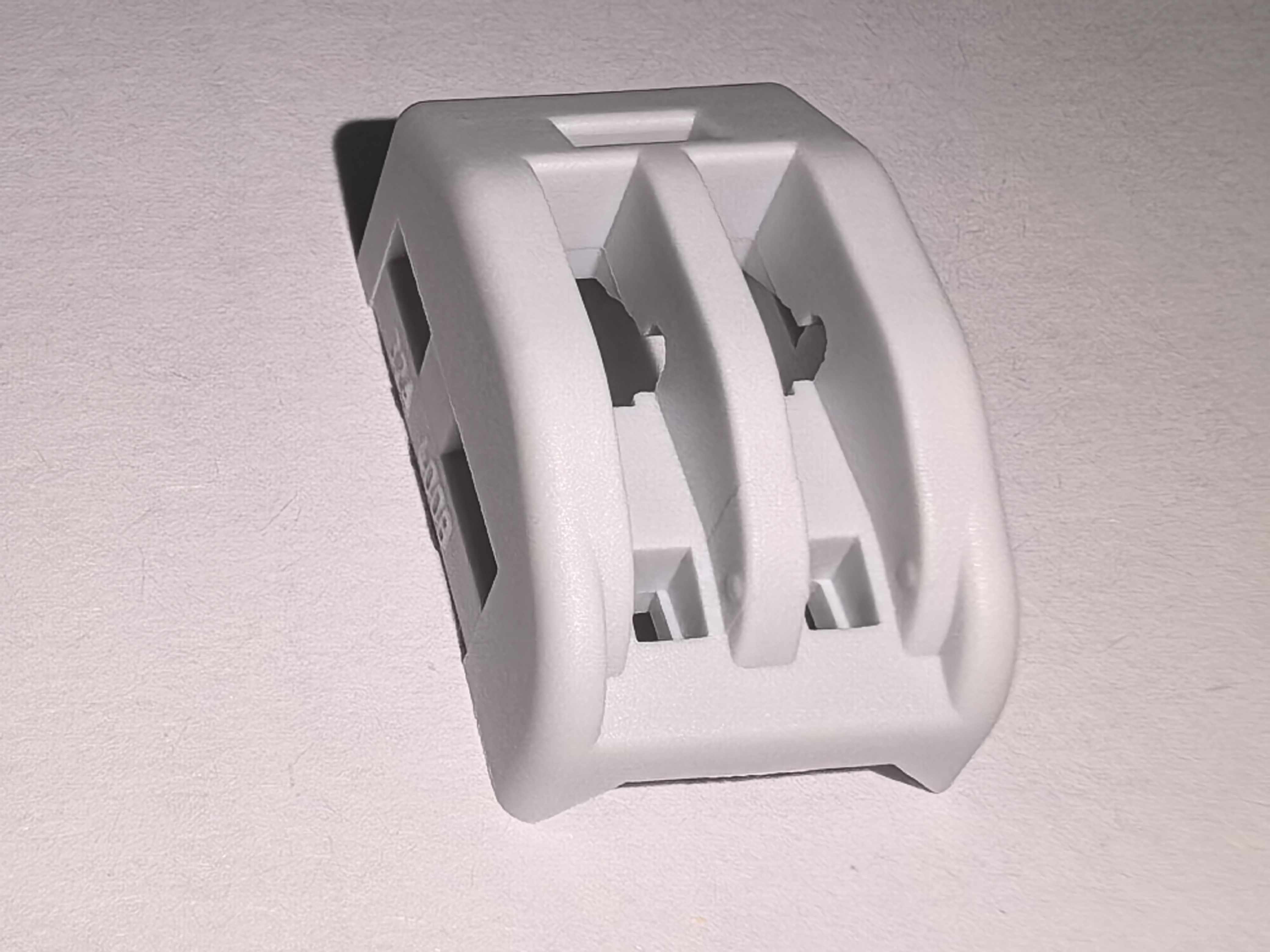 Это пластиковая крышка проволочного разъема, часть - два отверстия, пространство с маленьким круглым ребро с тиснением, которое делает кнопку плотной и не свободной. Небольшое круглое ребра является проблемой для дизайна пластиковой формы и изготовления пластиковой формы.
